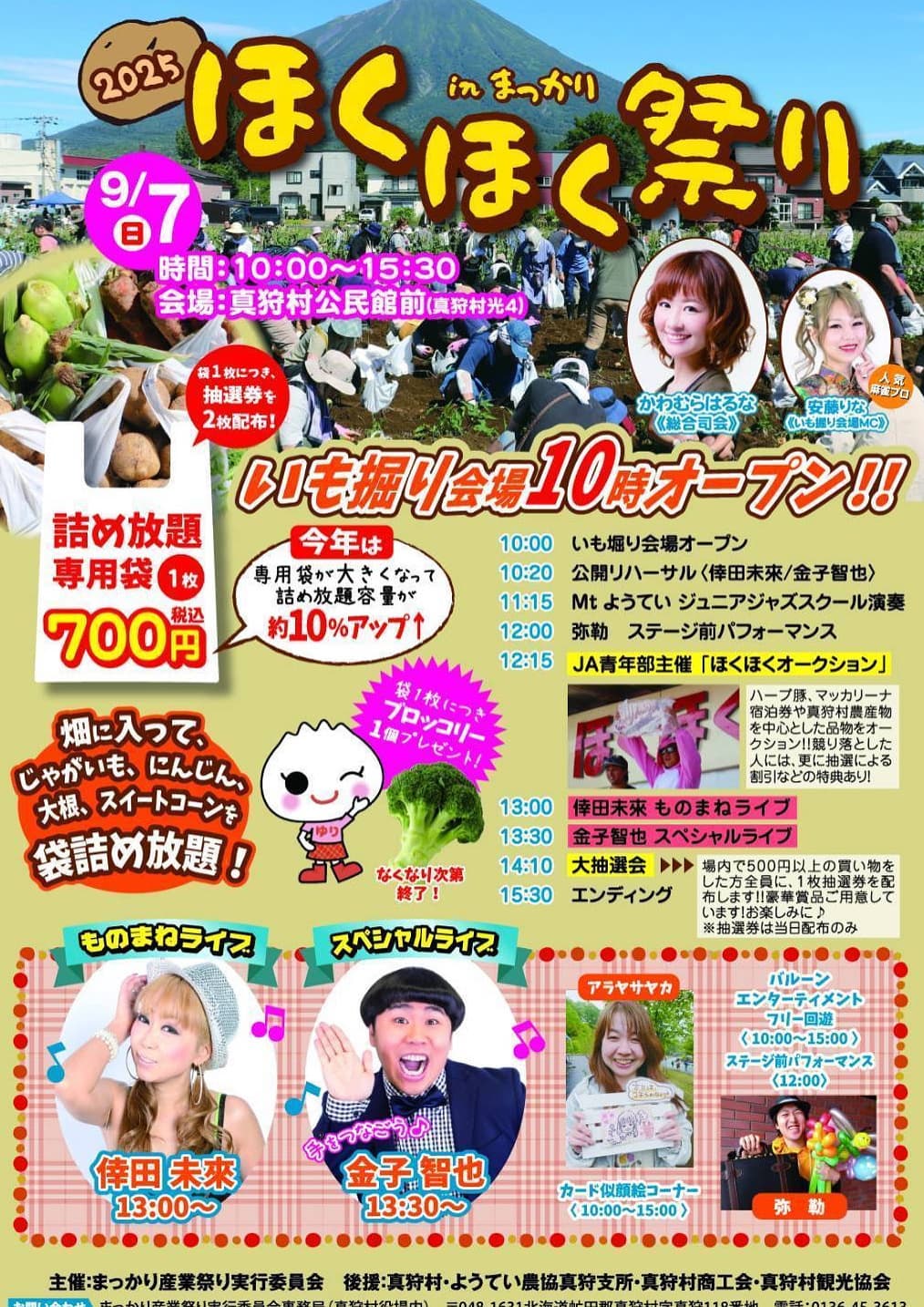 【出演】金子智也スペシャルライブ / 倖田未来ものまねライブ / 弥勒バルーンアート / アラヤサヤカ似顔絵コーナー / MC かわむらはるな / いも堀り会場MC 安藤りな(人気プロ雀士) / and more...
